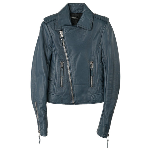 LEATHER BIKER JACKET / LIGHT NAVY