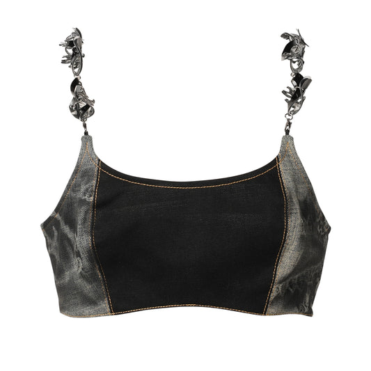 LASER LOVE WEAVE MINI SKIRT / BLACK/YELLOW-GREEN