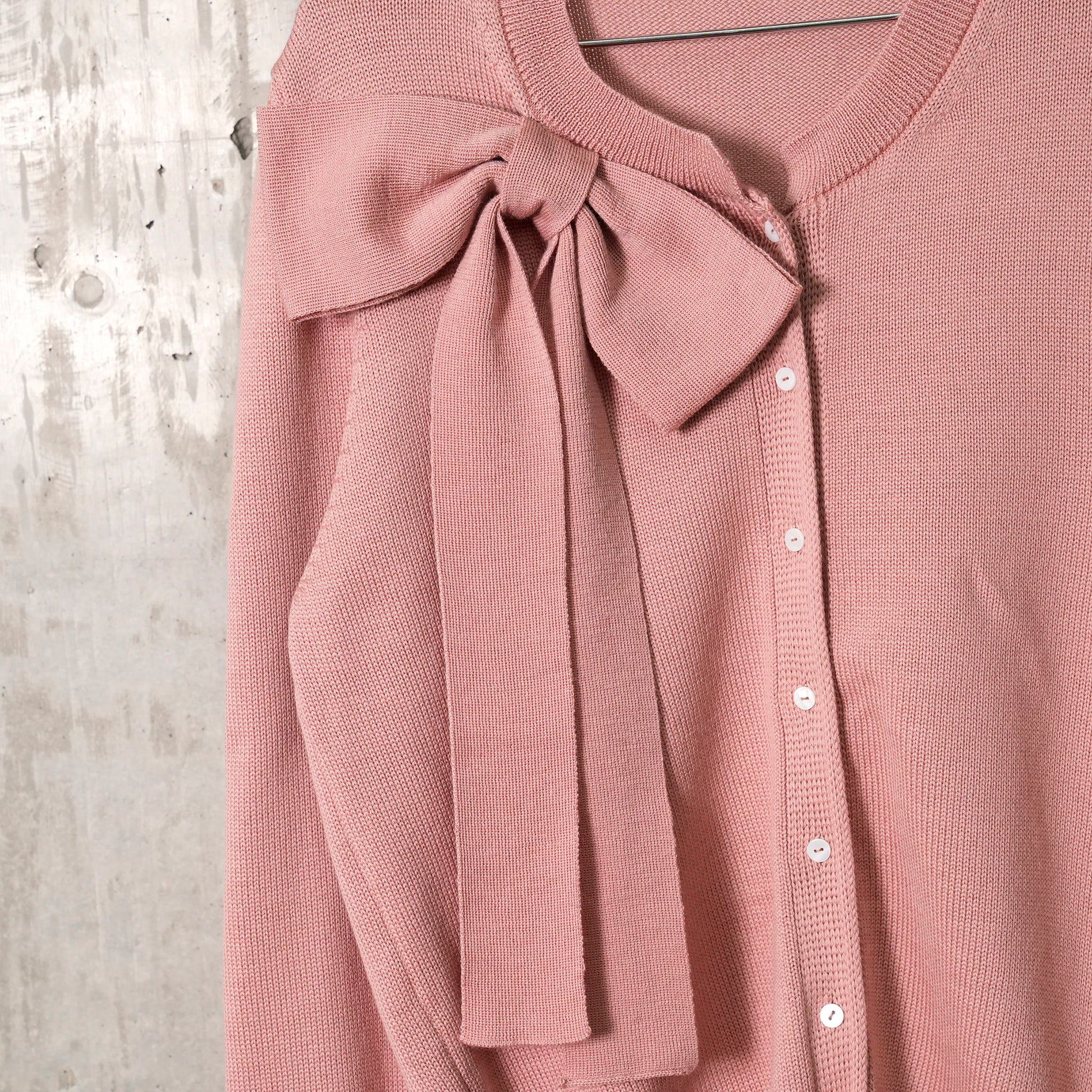 CLASSIC FRENCH KNITTED MERINO CARDIGAN WITH FRONT BUT- TONS AND SHORT HEM AND KNIT- TED BOW / ROSE