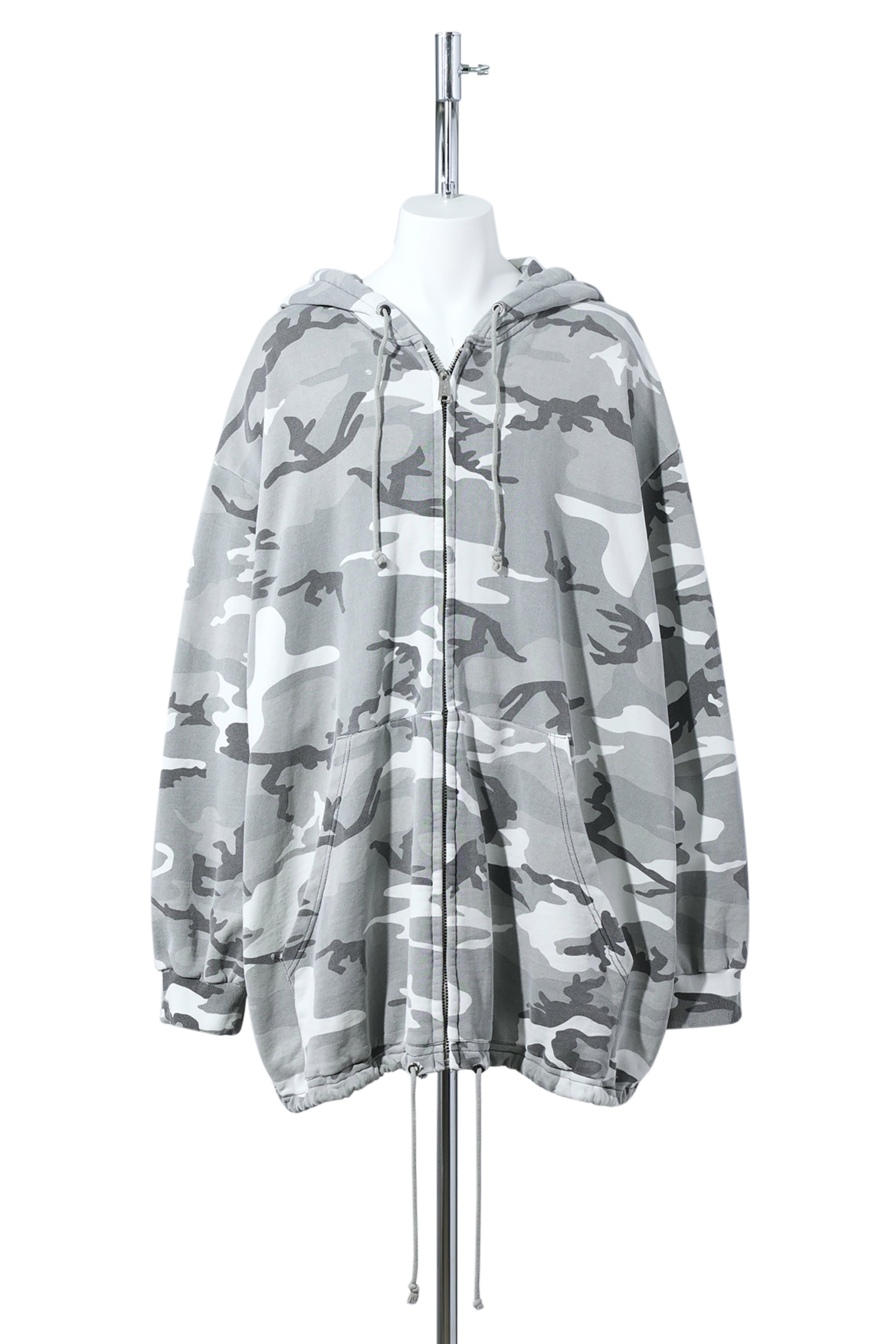 DISTRESSED WASH GIANT CAMO HOODIE / GREY CAMO