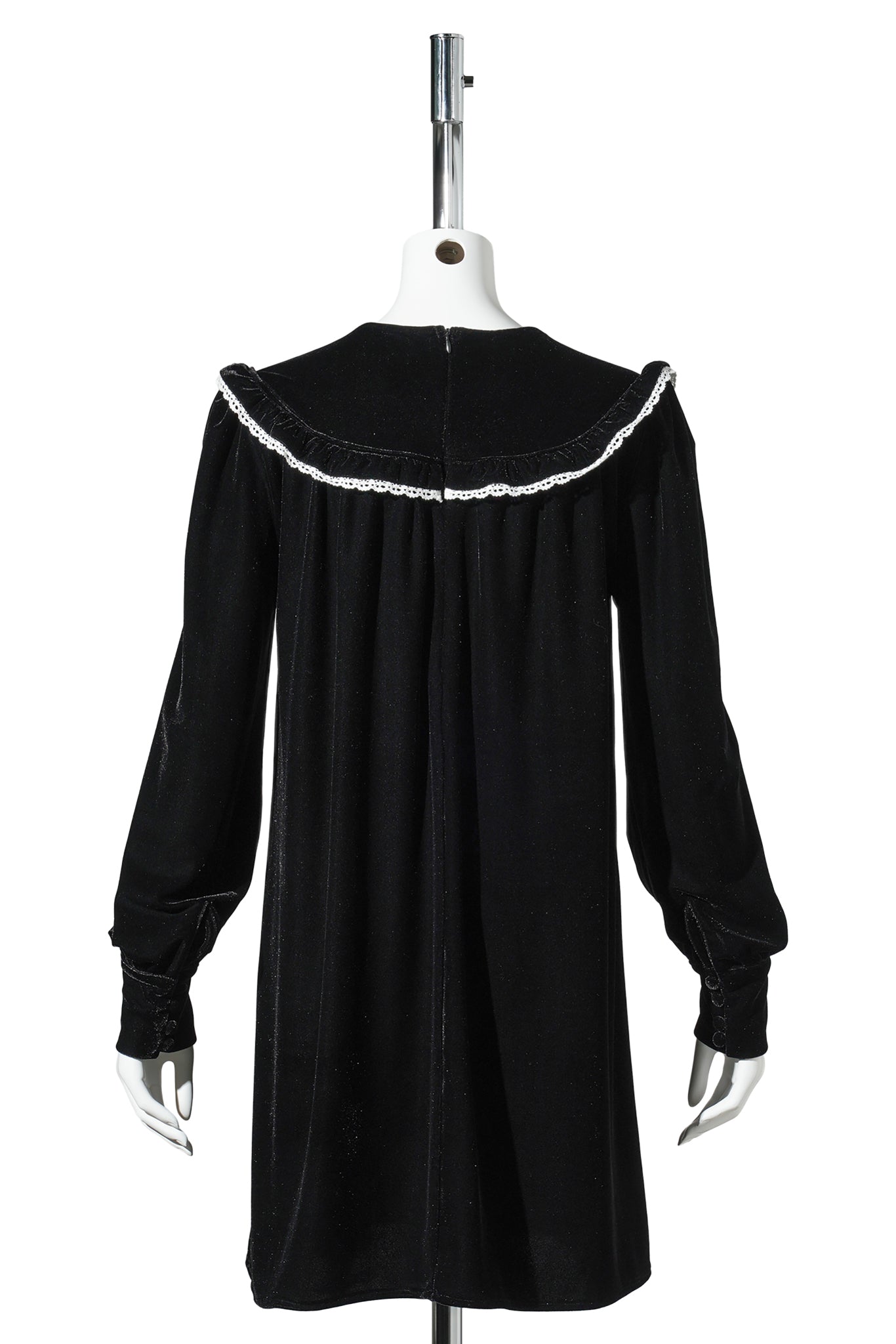 STRTCH VELVET JERSEY COLLAR MINI DRESS / BLACK