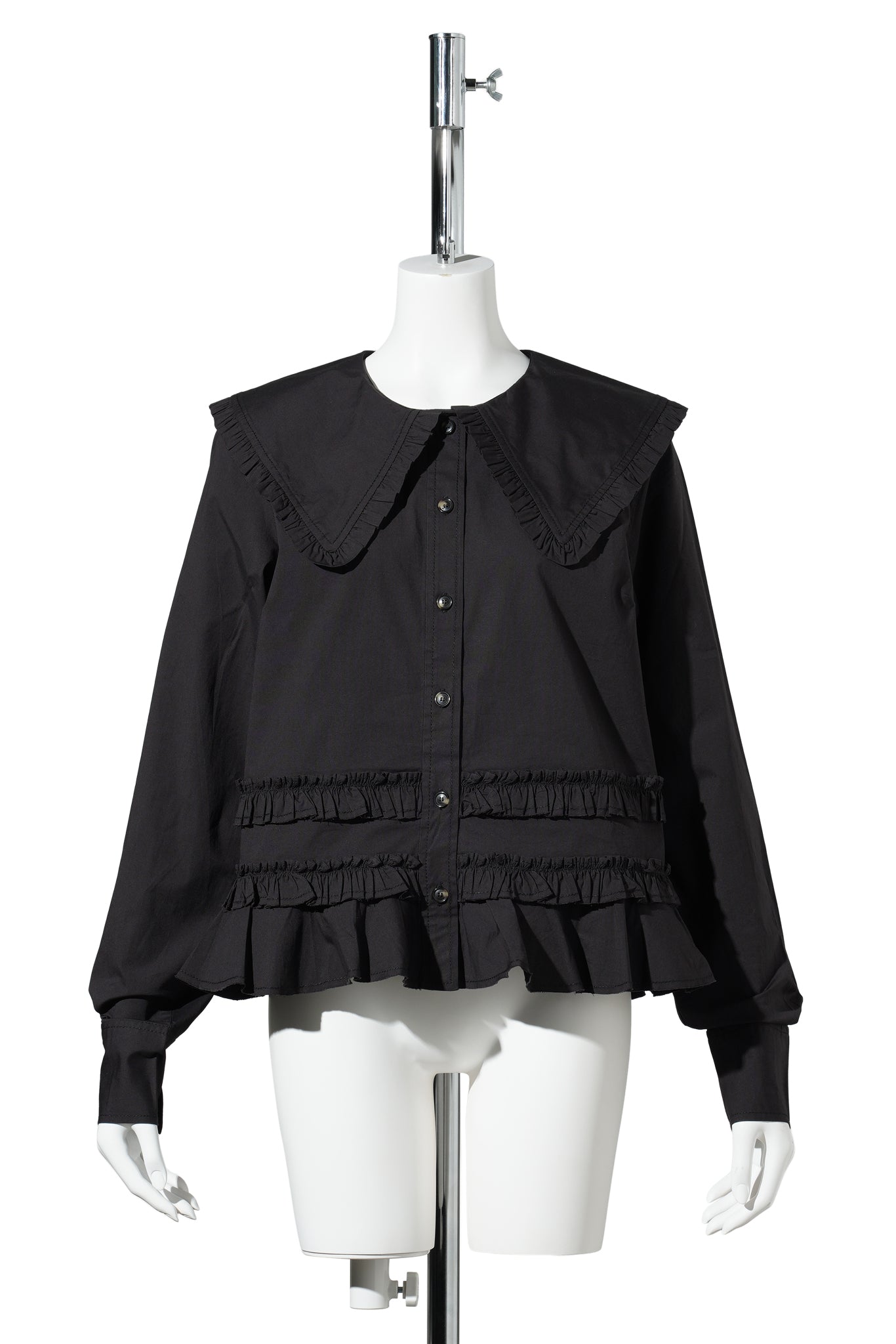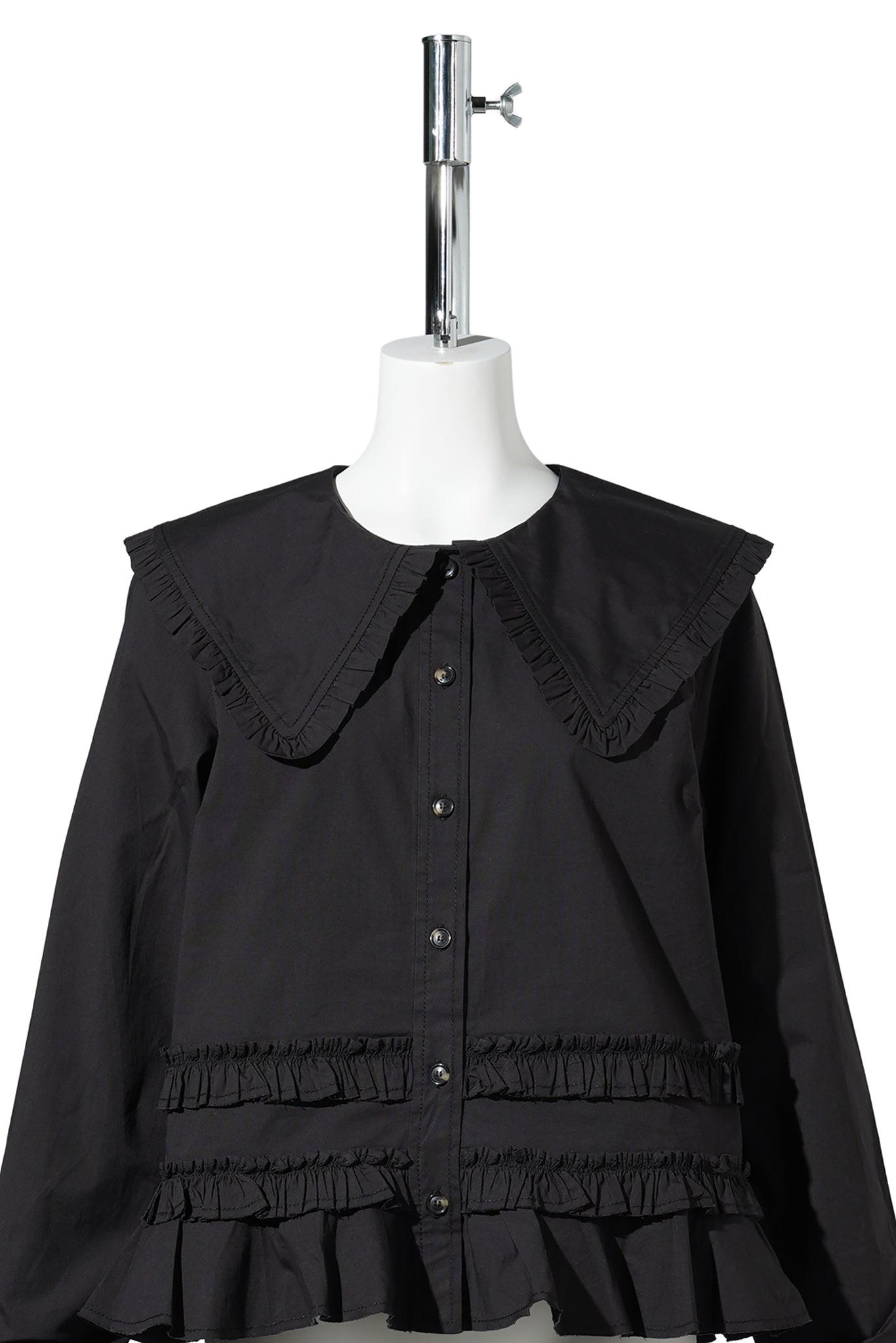 STRETCH COTTON SHIRT W. FRILLS / BLACK