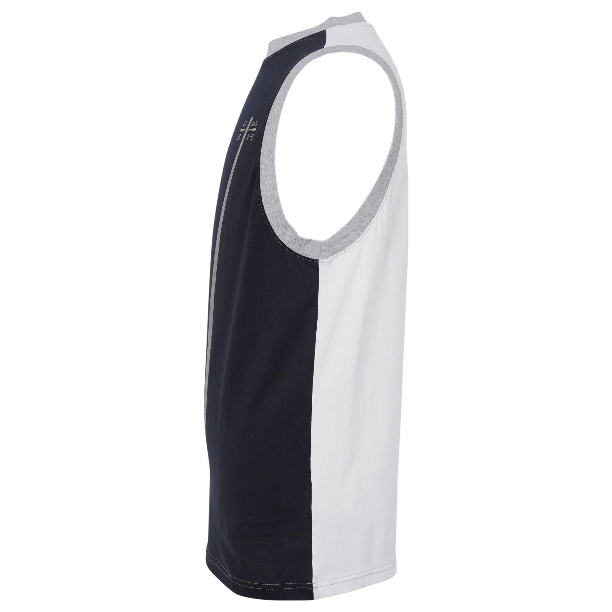SLEEVELESS T-SHIRT WITH SWORD PRINT / NAVY/OFF-WHITE/SILVER