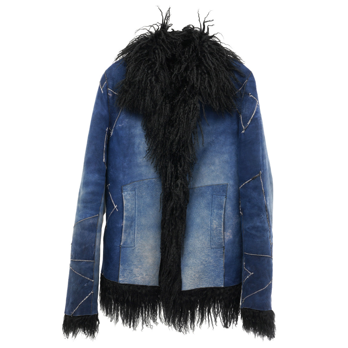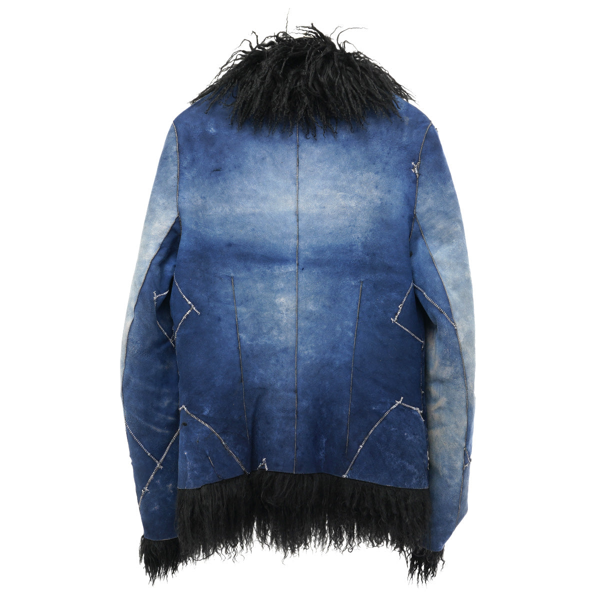 FUR LEATHER COAT / BLUE&BLACK