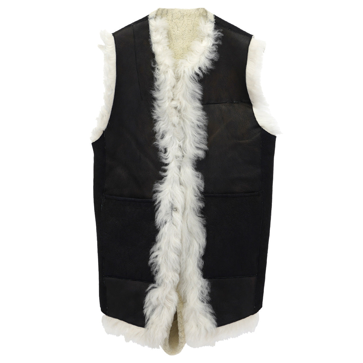 FUR LEATHER VEST / BLACK&WHITE