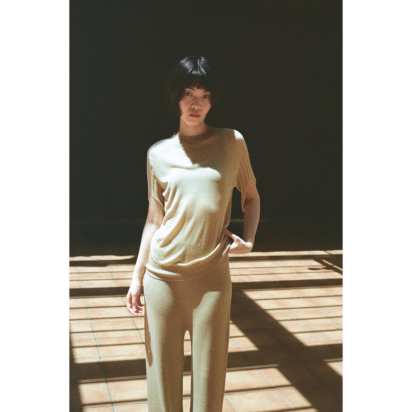 SLITTED SLEEVE TOP / MELANGE GREY