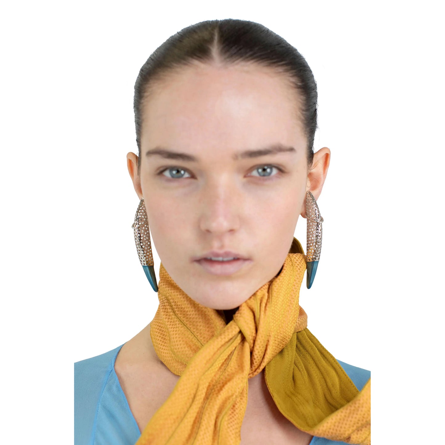 LIBER DROP EARRINGS / SILVER/METALLIC BLUE