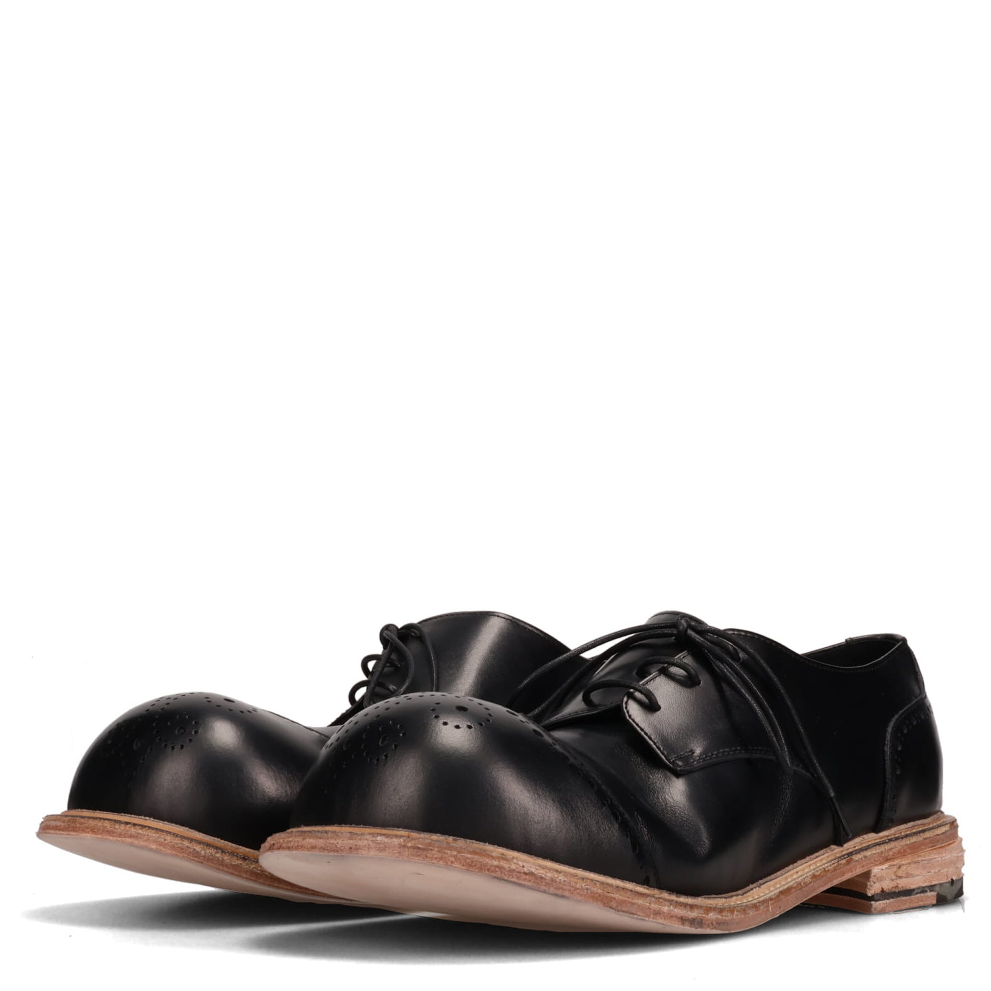 BIG FOOT CURVED WINGTIP DERBY LEATHER SOLE / BLACK/RAW SOLE NATURAL