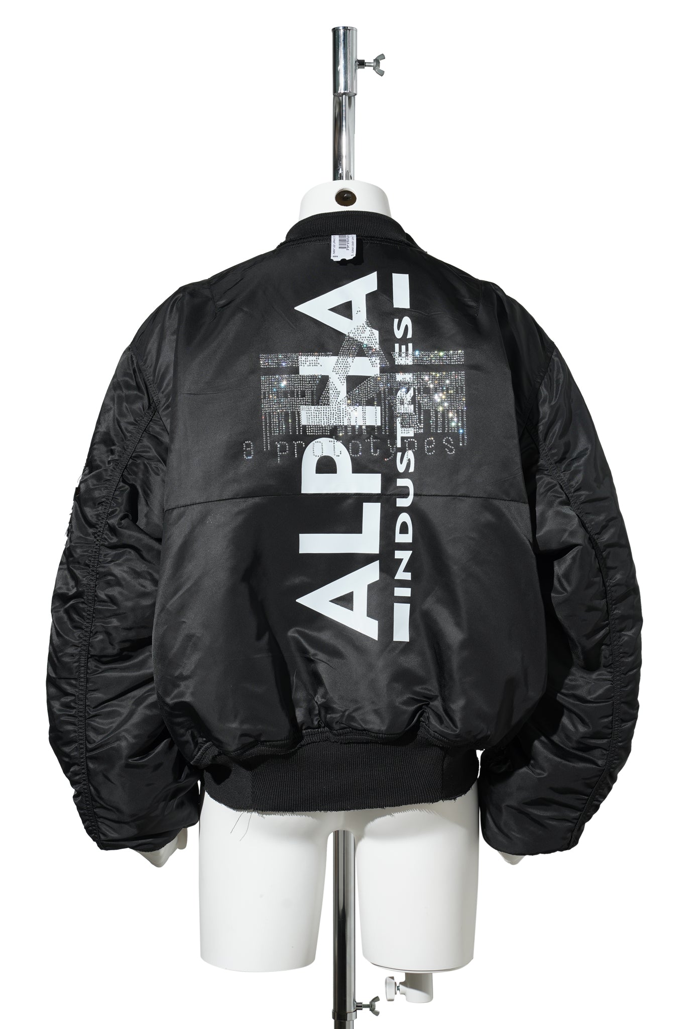 TECHNICAL NYLON BLACK RHINESTONE BOMBER / BLACK