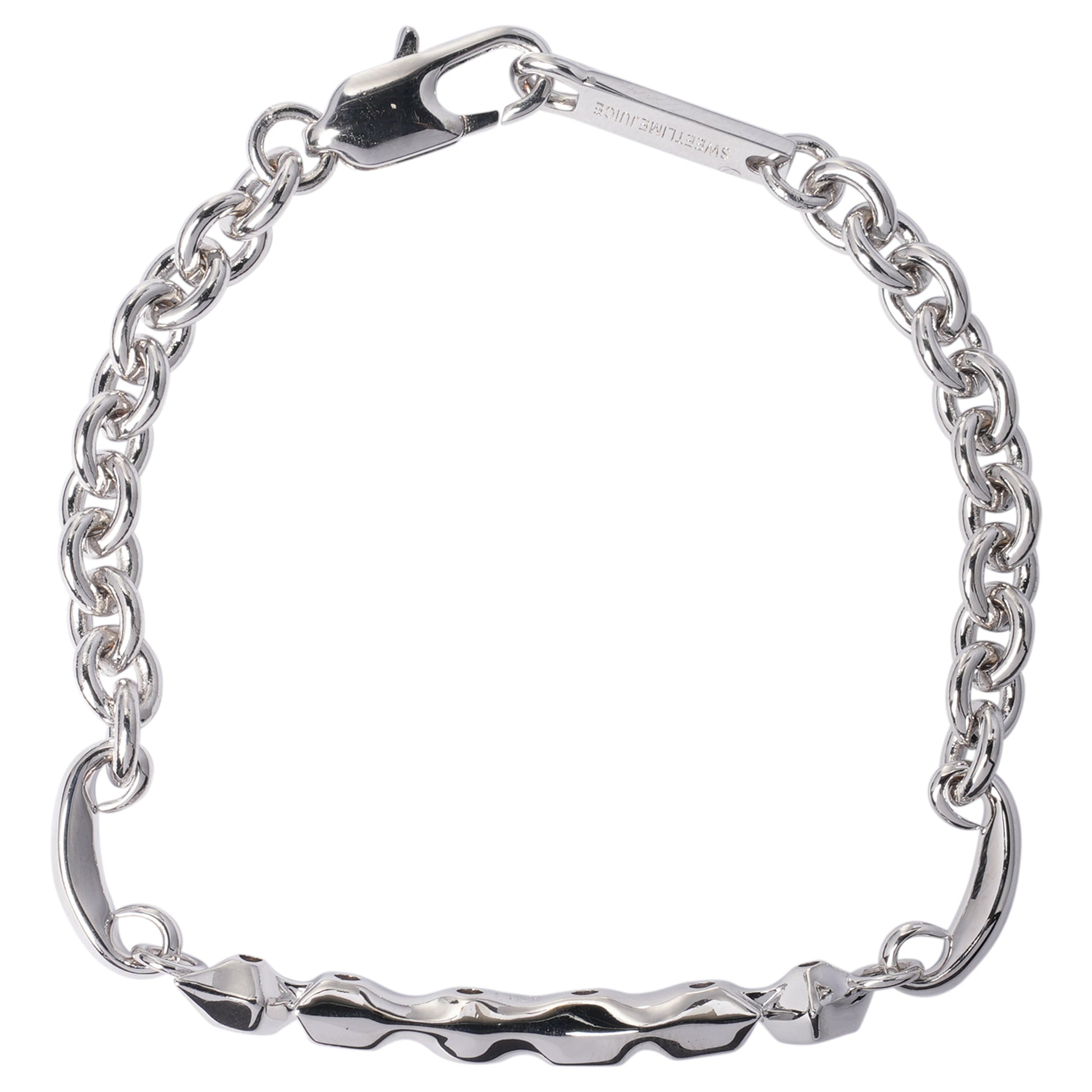 SILVER GEM-MOSAIC KAMON BRACELET / SILVER, WHITE STONE
