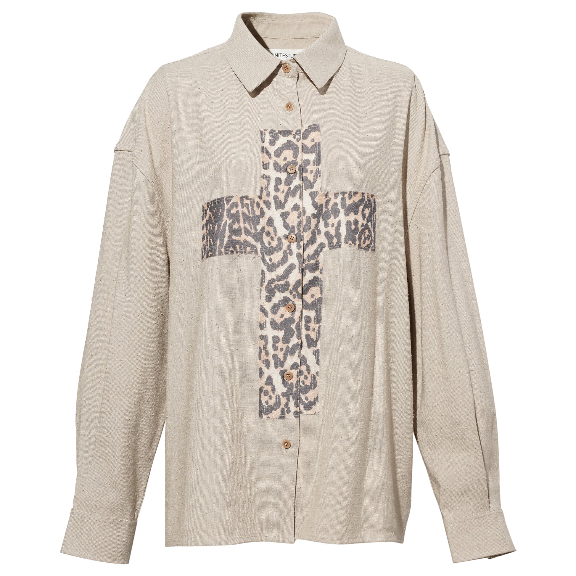 LIGHT KHAKI LEOPARD DECORATIVE LOOSE SHIRT / LIGHT KHAKI
