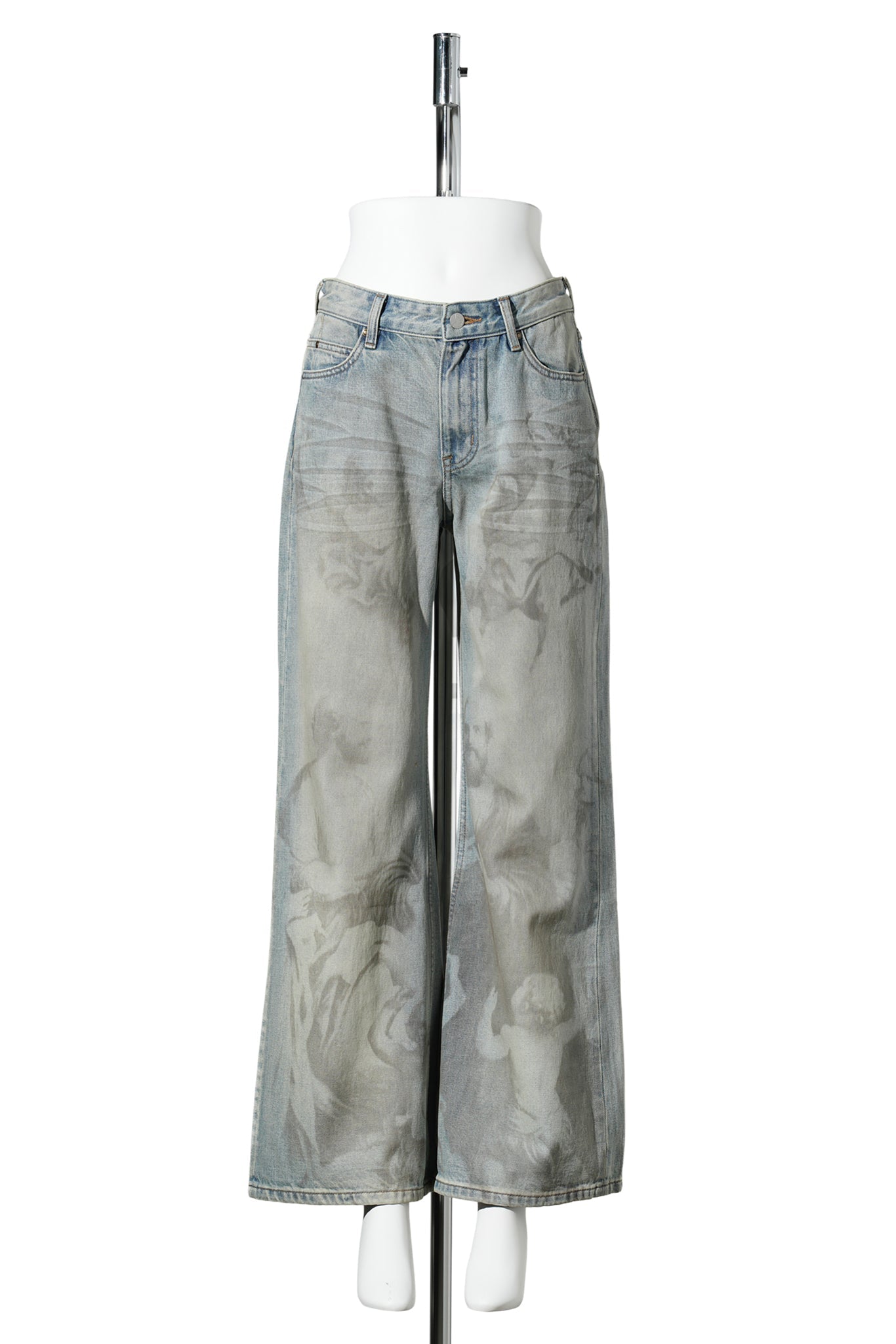 CLASSIC PORTRAIT PRINT DIRTY DYE JEANS / BLUE