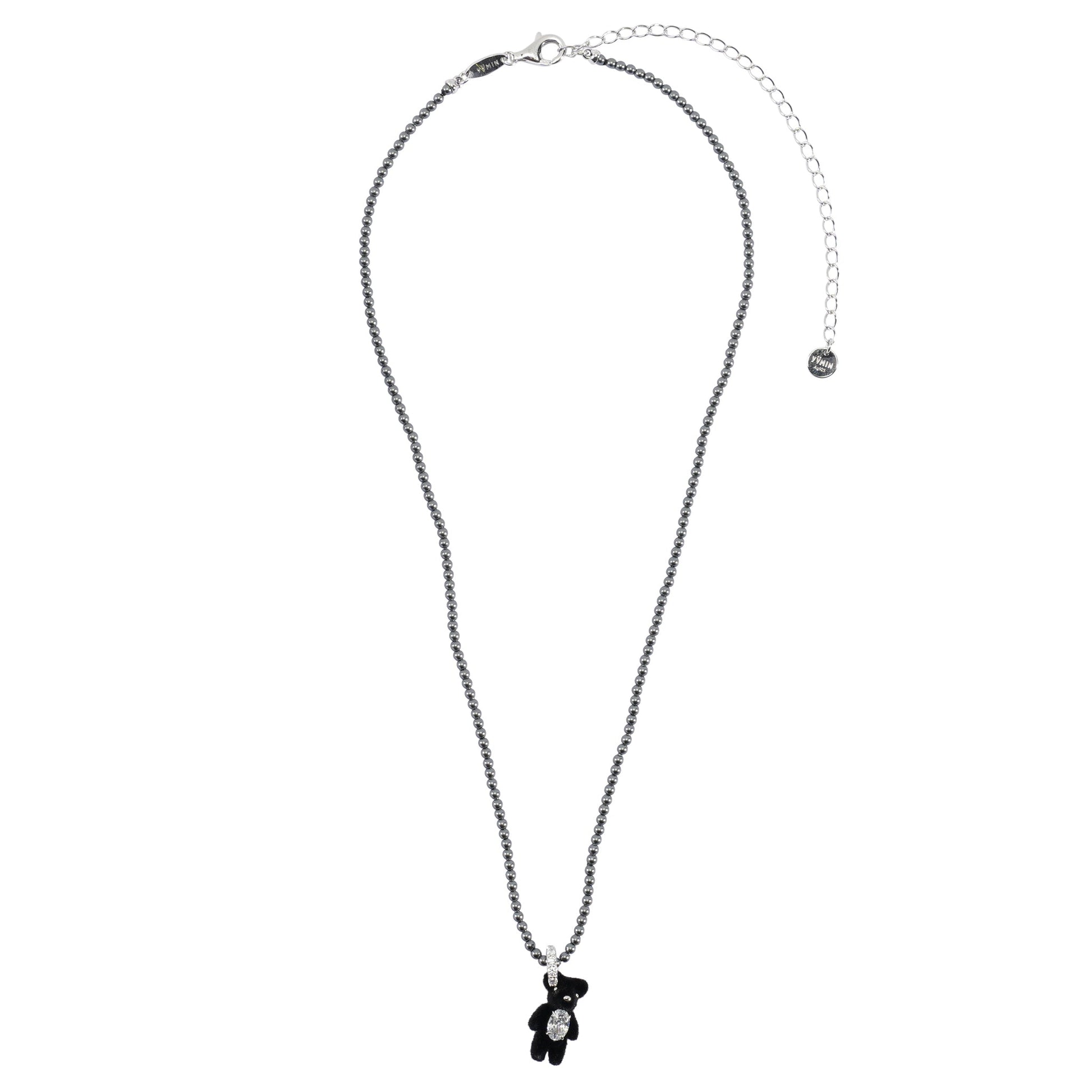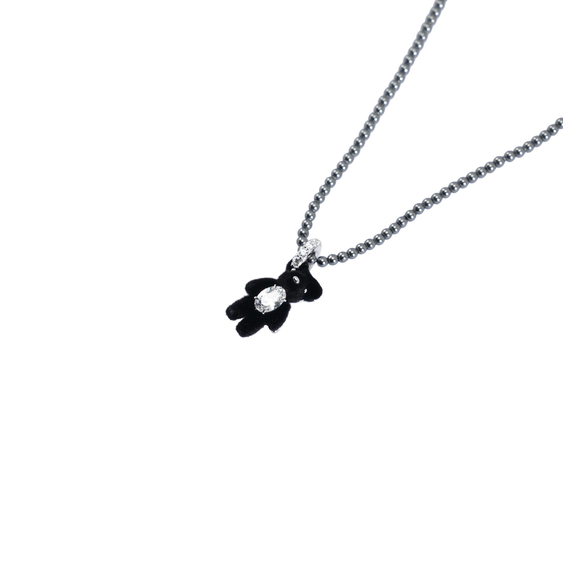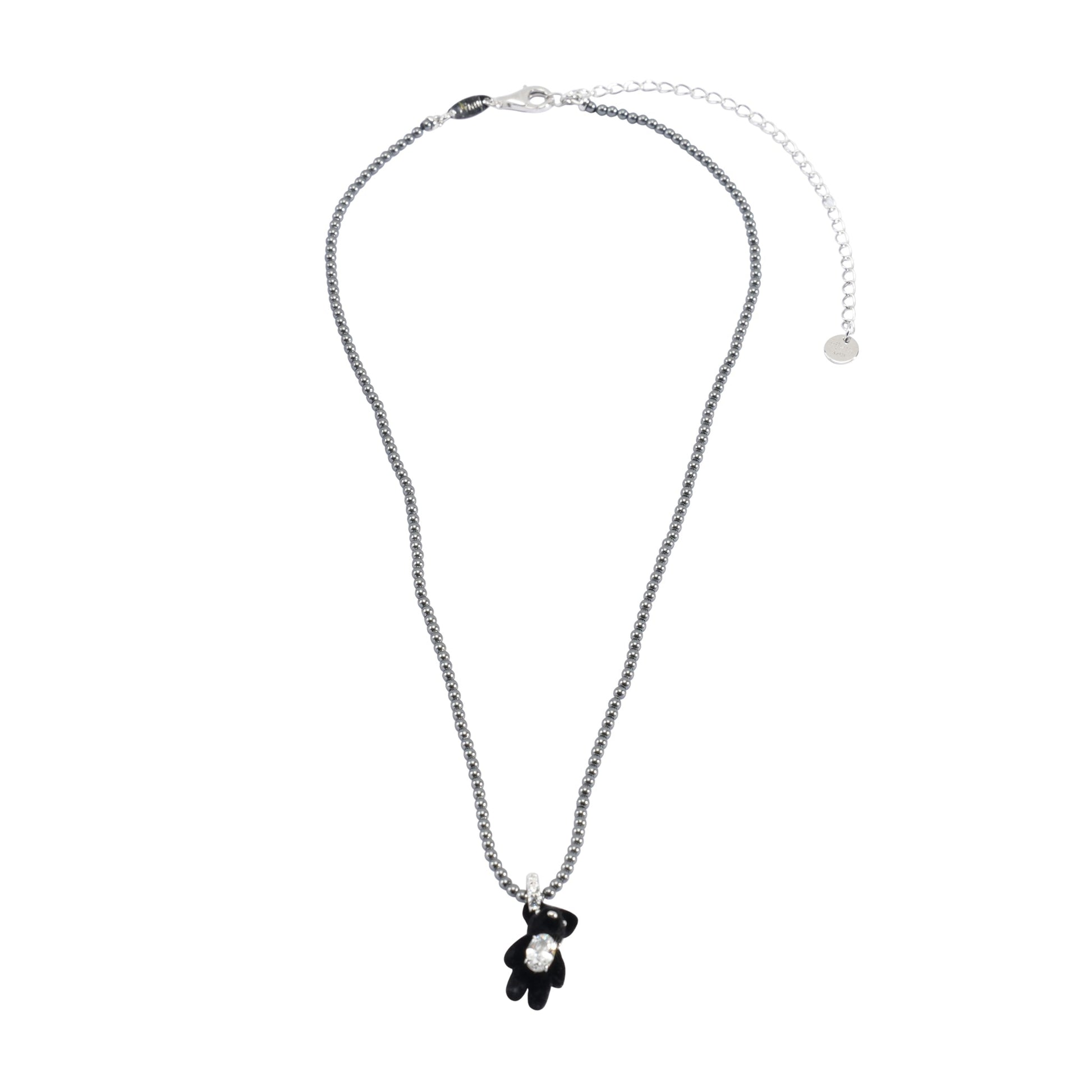 MINI FLOCKED BEAR PEARL NECKLACE / BLACK