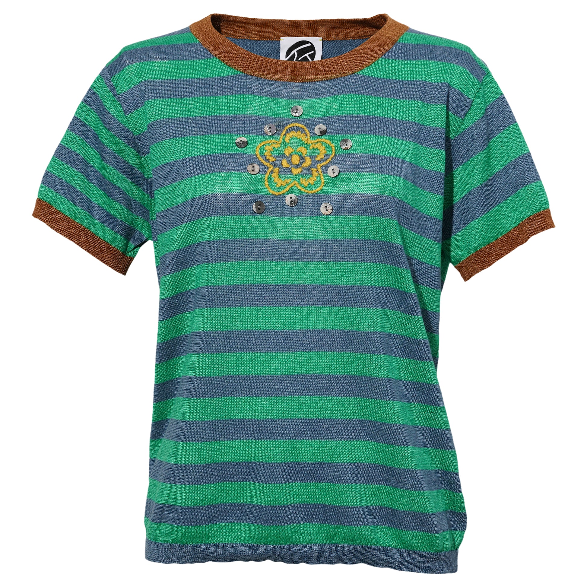 LINEN YANYAN STRIPE TEE (REG FIT) / DENIM/PEPPERMINT